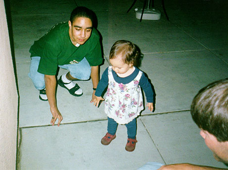 Guido hams it up, with Lister, ?, and Arson behind him.